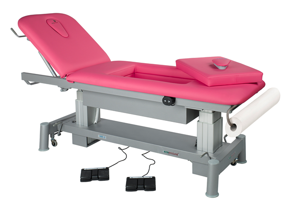 Furthermore, this table is equipped with 2 breathing holes, 2 foot control switches and a plug for obturation of the abdominal cavity, which makes it a really versatile model.